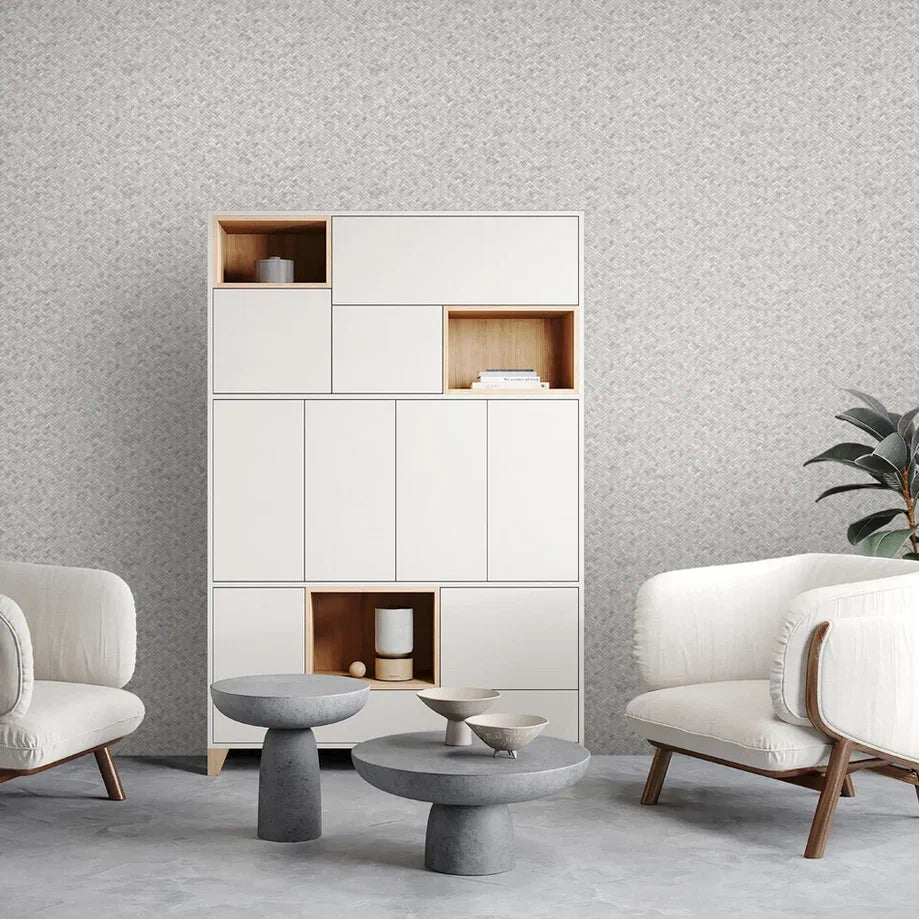 Elegant Fishbones-tapetet er perfekt til stuer, spisestuer, soveværelser eller kontorer, hvor det kan fungere både som en markant accentvæg og som en komplet vægbeklædning. Dets alsidige design og moderne farver gør det nemt at integrere i forskellige indretningsstile, fra minimalistisk til eklektisk.