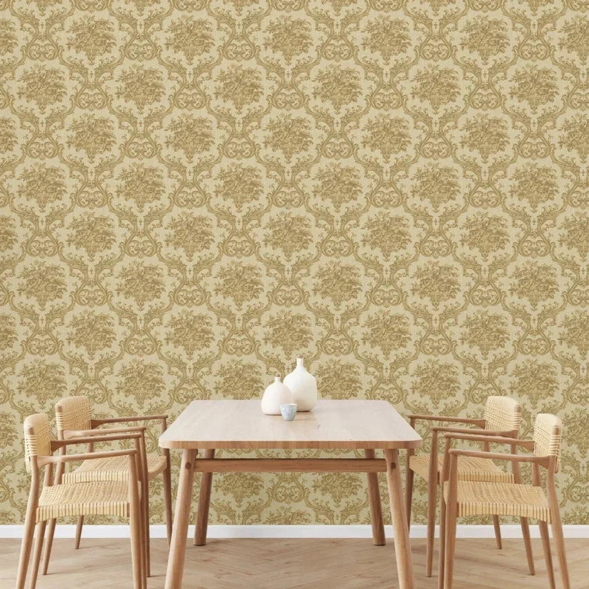Our wallpaper is made from the highest quality materials, which ensures easy installation and long-lasting durability. The advanced printing method ensures that the brass colored roses and the detailed patterns appear with exceptional clarity and beauty, giving a realistic and impressive result.