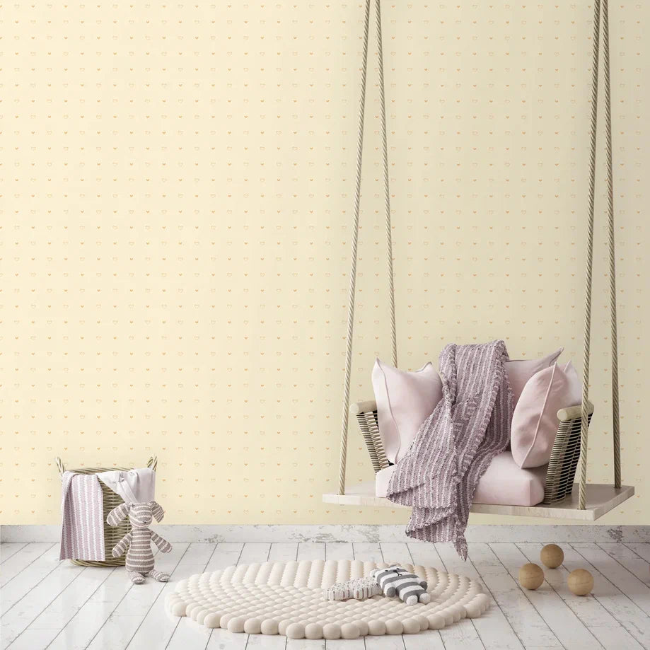 Little Princess is an adorable wallpaper designed to create a loving and charming space for your little princess. The wallpaper is adorned with two kinds of small orange hearts on a cream background, complemented by fine vertical, discreet lines that add a sweet and elegant touch.