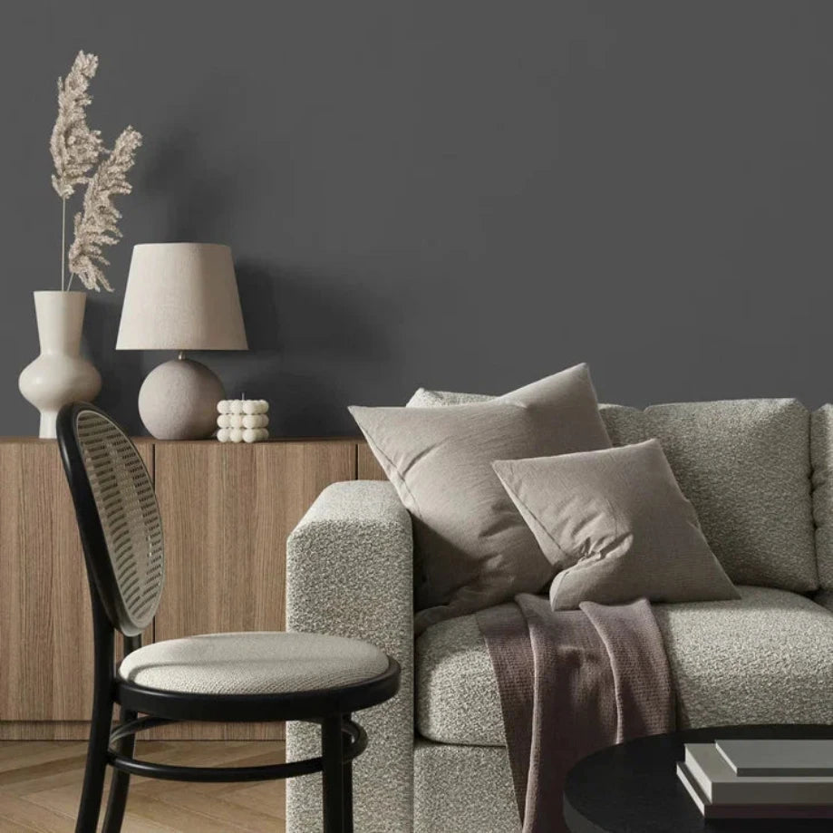 Den dybe grå tone fungerer som en dramatisk, men subtil baggrund, der fremhæver lyse møbler og naturlige materialer. Scandiapan Minimal 8 er ideelt til stuer, soveværelser eller loungeområder, hvor det tilfører en følelse af ro og eksklusivitet.