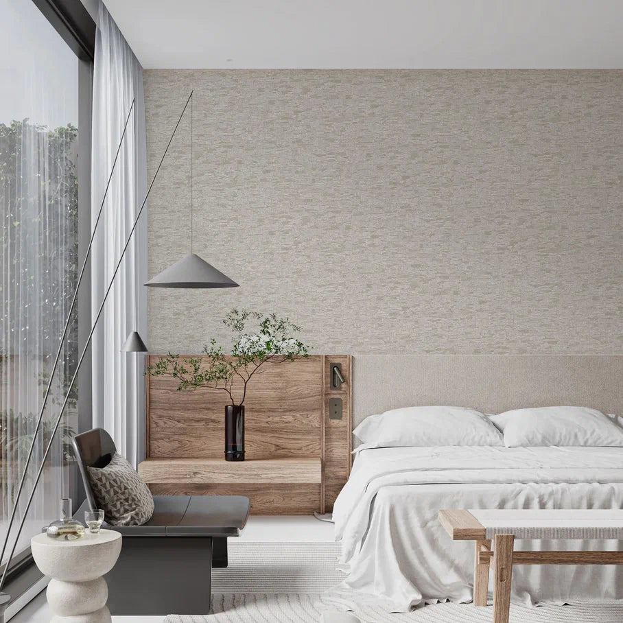 Designet efterligner det unikke mønster og den bløde struktur af kork, hvilket tilfører væggen både karakter og dybde uden at være overvældende. De lyse toner reflekterer smukt lyset og gør rummet mere rummeligt og luftigt, mens det naturlige korklook skaber en harmonisk forbindelse til naturen.