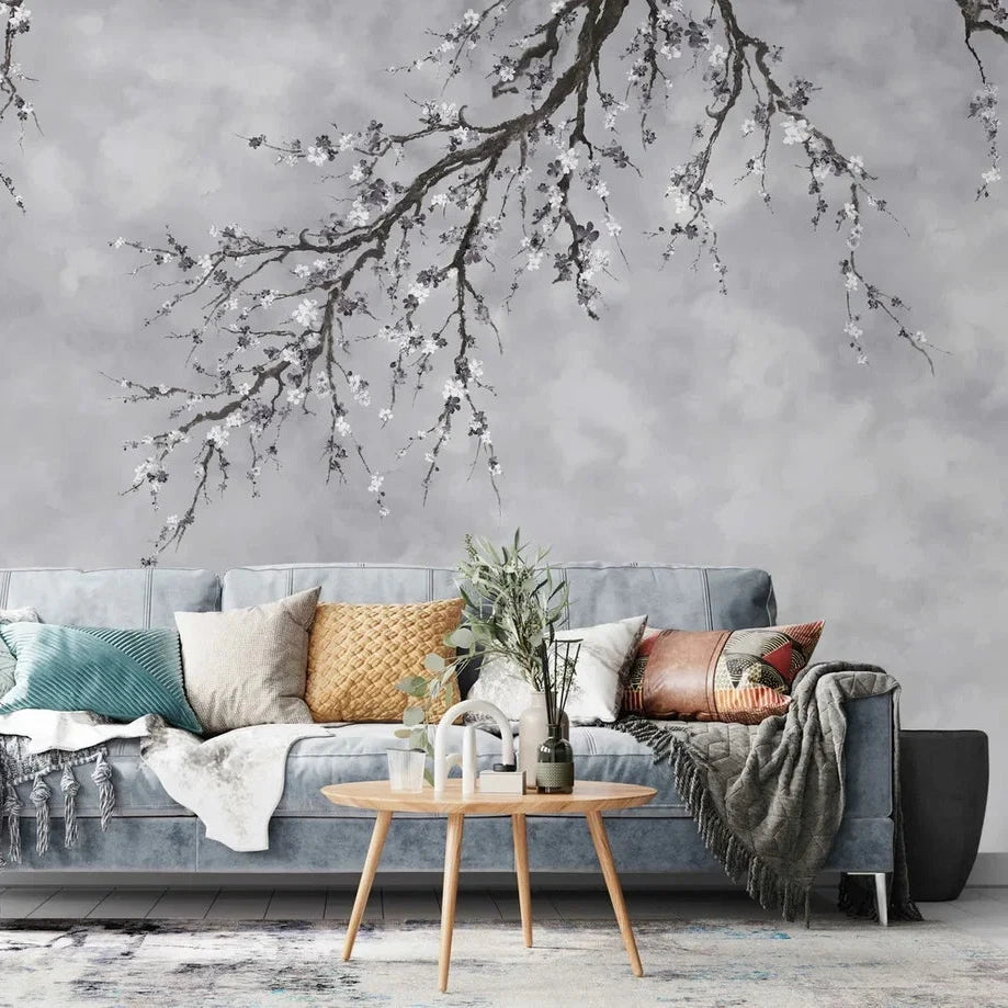 Forår i Skagen er et stilfuldt væg-til-væg tapet, der indfanger den nordiske forårsstemning med sarte blomstergrene, som strækker sig hen over en kølig, grå baggrund. De fine hvide blomster på de elegante grene tilføjer en frisk og luftig følelse, der bringer forårets skønhed ind i dit hjem med en subtil, men raffineret effekt.
