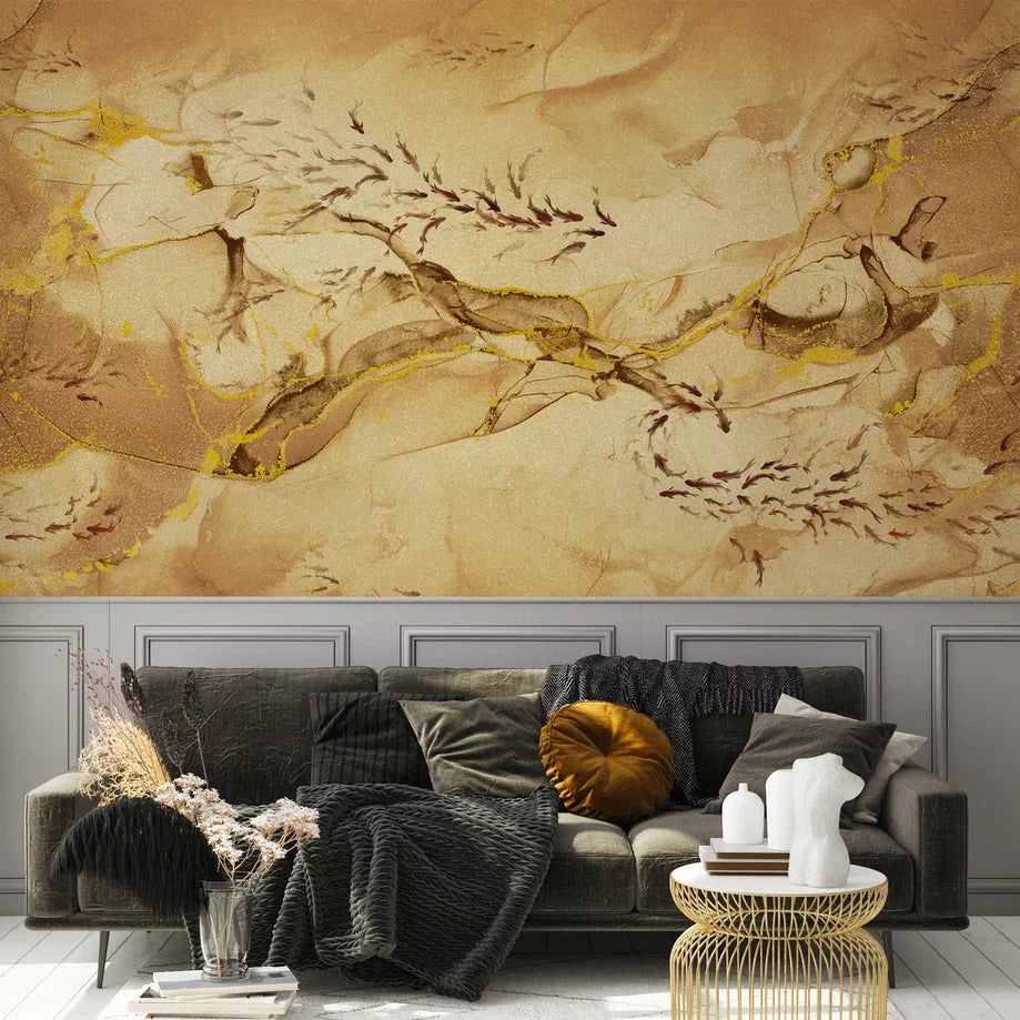 Hyggebakke er et væg-til-væg tapet, der bringer varme og hygge ind i ethvert rum med sit rige farvespil af gyldne og jordnære nuancer. Inspireret af naturlige formationer og organiske mønstre, skaber dette design en følelse af jordforbindelse og ro. Tapetet udstråler en rustik elegance, hvor subtile gule og brune toner blander sig harmonisk med de mere delikate detaljer, der tilføjer en følelse af dybde og tekstur.