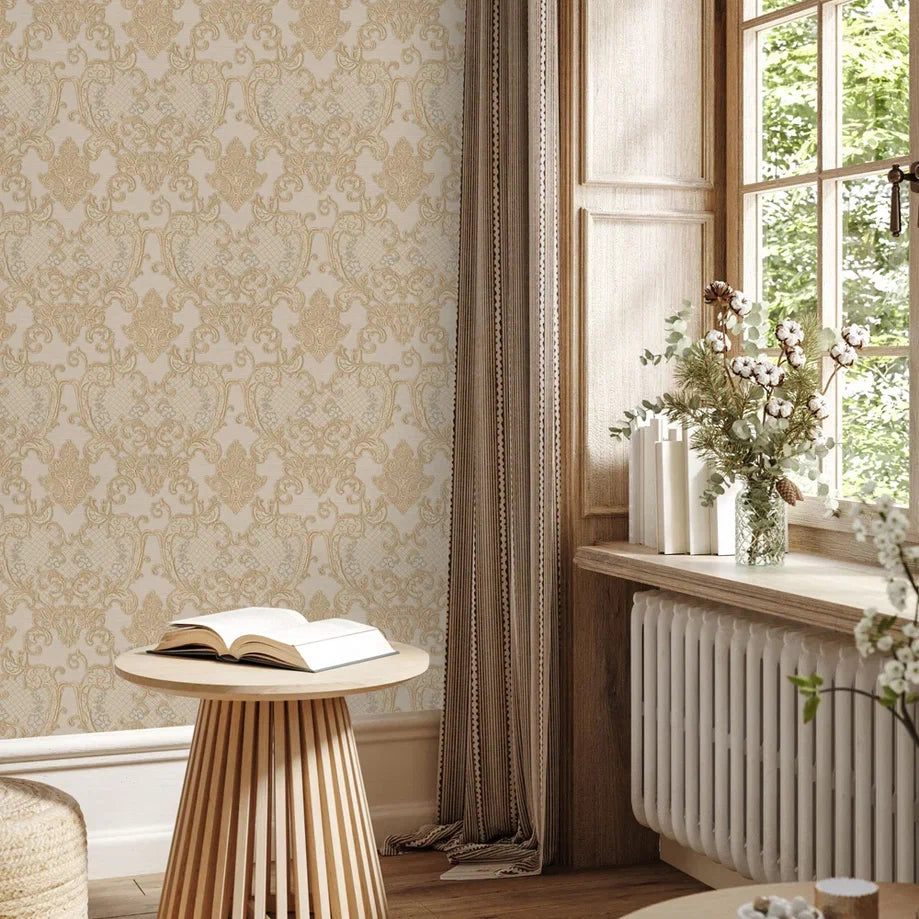 Golden Palace-tapetet er perfekt til at skabe en stemning af kongelig elegance i ethvert rum. Det fungerer som en imponerende accentvæg i stuer, spisestuer eller soveværelser, hvor det tilføjer en fornemmelse af historisk glamour og aristokratisk charme.