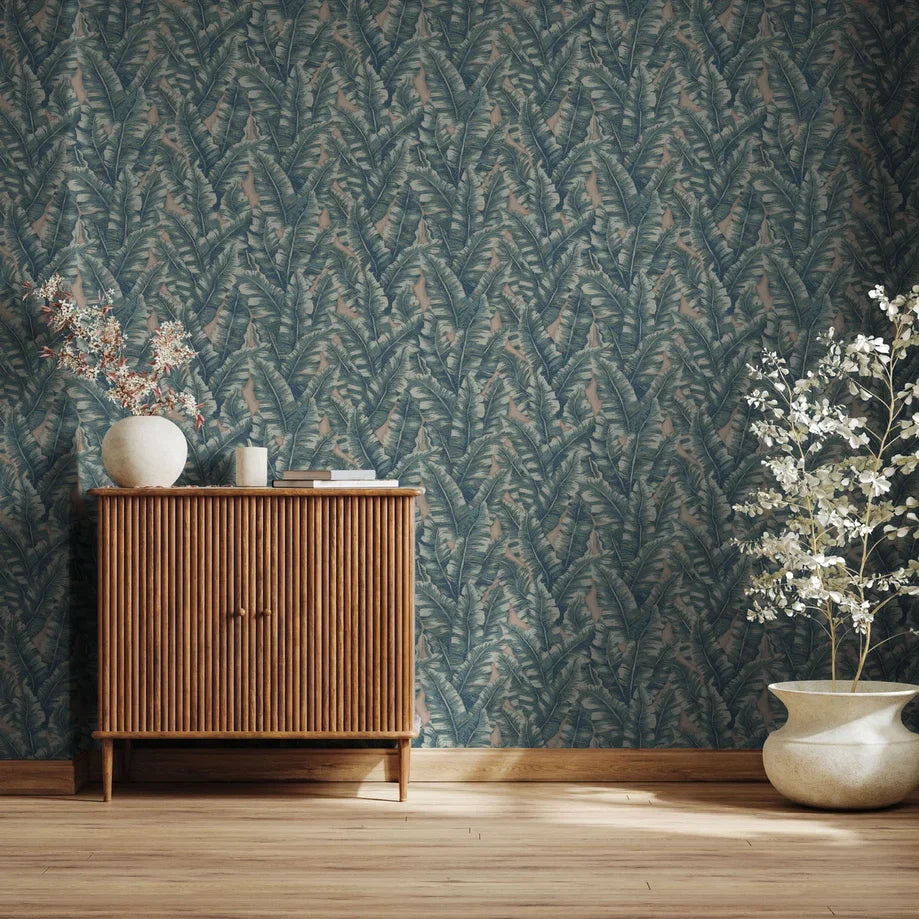 Designet er inspireret af de frodige blade i naturen, hvor de store grønne blade giver en følelse af liv og vitalitet til rummet. Mønstret er omhyggeligt udformet for at skabe en visuel effekt af vævning, der tilføjer dybde og tekstur til væggen og skaber en naturlig atmosfære.