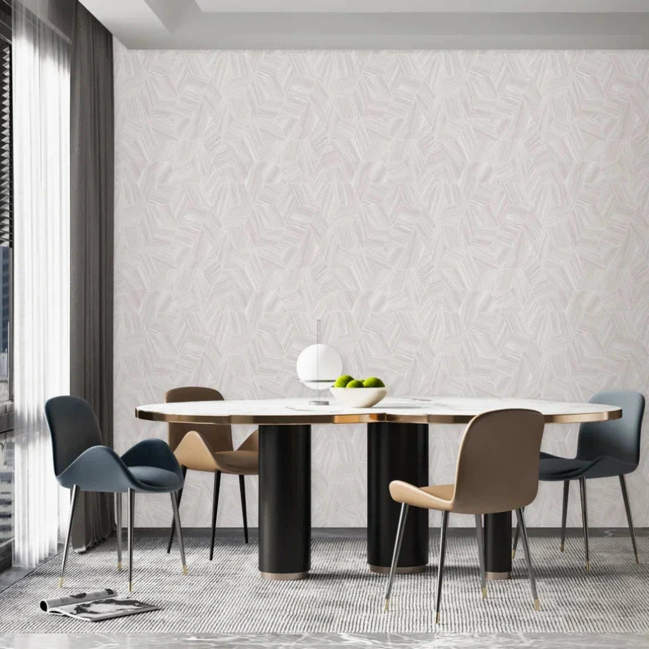 Designet er inspireret af geometriske former og moderne æstetik, hvor de lakerede sekskanter reflekterer lys og tilføjer en dimension af dybde og tekstur. De nøje udvalgte farver skaber en sofistikeret balance mellem varme og kølige toner, hvilket gør dette tapet ideelt til både afslappende og formelle rum.