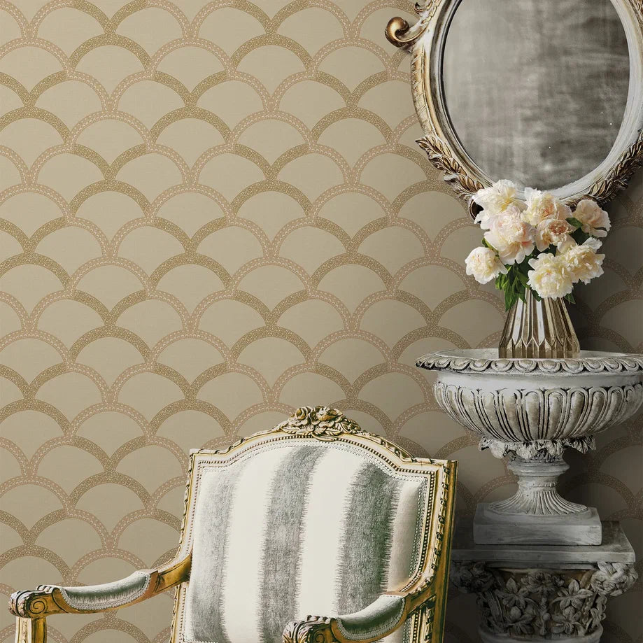 Skagerrak Waves er et tapet, der bringer den betagende skønhed af Skagerraks kyster ind i dit hjem. Mønsteret minder om gyldne bølger, som elegant mimer ornamenter, og skaber en følelse af ro og bevægelse. Baggrunden ligner stof og er inspireret af de naturlige farver ved Skagerraks kystlinje.