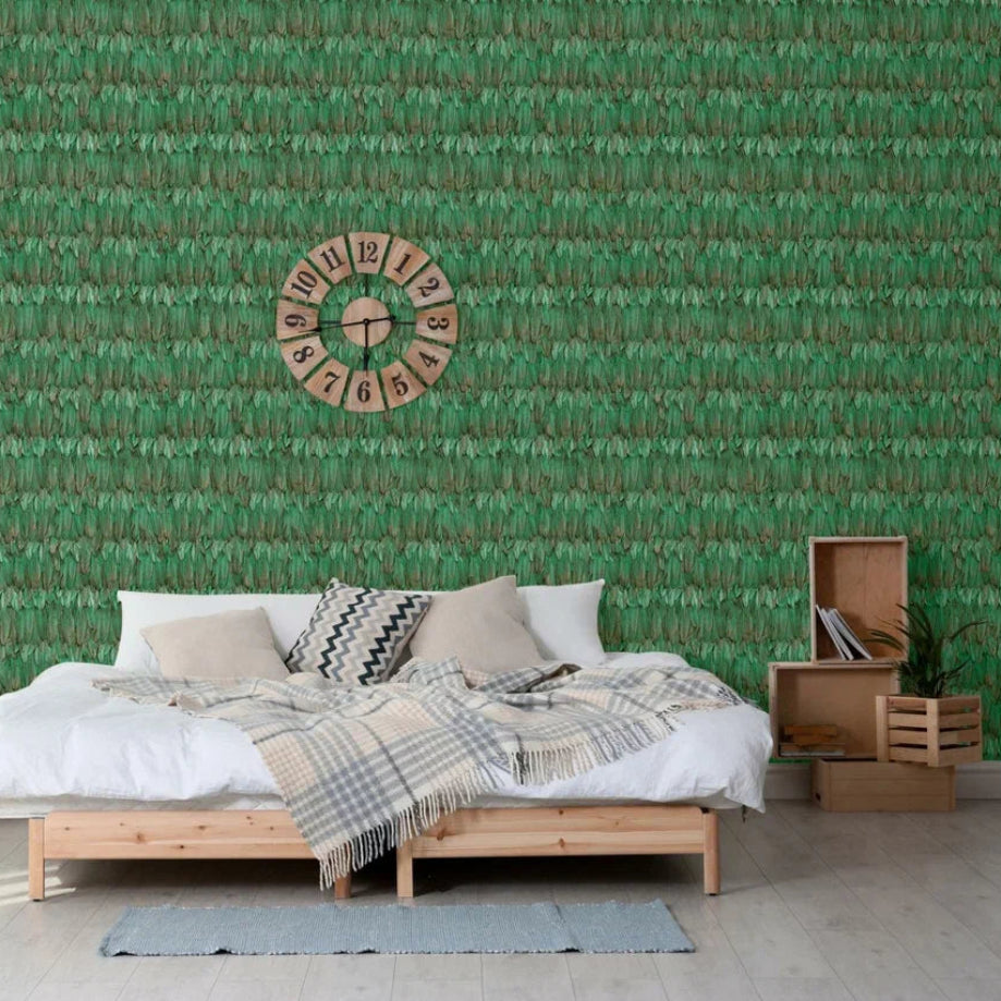 Designet er inspireret af naturens egne strukturer, hvor hver fjer ligger som et stille penselstrøg. Farverne skifter diskret mellem grøn og grå, hvilket gør tapetet både levende og afdæmpet på samme tid. Resultatet er et udtryk, der virker beroligende og indbydende – perfekt til soveværelset, stuen eller ethvert rum, hvor du ønsker en følelse af fred.
